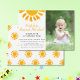 This cute invitation is decorated with a yellow watercolor sun, stylish script typography, and a sun pattern on the back.