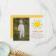 A First Trip Around the Sun Kids Photo Birthday Thank You Card with cute sun and modern design. Click the edit button to customize this design with your details.