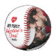 Cute 1st valentine's day baseball gift featuring a red love heart with you and your partners initials, the text "our first valentines day!", and the year. Plus 2 photos for you to customise with your own to make this an extra special boyfriend gift.