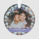 Fancy purple hue personalised photo ornament to display your own special memory of your kids. The snowflakes and ribbon in soft blue and purple colour encircles the photo, creates a dreamlike atmosphere. The word "My First Christmas" is designed in a beautiful handwritten white script style and with a shadow so that it will be displayed clearly on either light or dark background. Easily place your own memorable photo in place of the template photo as well as the name and the year to make your own ones and send them to your friends and family.
