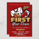 Celebrate your little MVP’s big day with this fun football-themed “First Year Down” invitation! Perfect for your baby boy’s first birthday party, this sporty design features a red and gold colour scheme with football gear, a helmet, and a game playboard for that game-day feel.