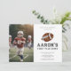 Kick off your little rookie's first birthday in style with this First Year Down 1st Birthday Party Invitation! Celebrate his standout status as the 'Rookie of the Year' with this sporty, football-themed invite. Adorned with vibrant green and brown hues reminiscent of the football field, it sets the stage for a spirited celebration. Join us at kick-off for a sports themed extravaganza that promises fun, touchdowns, and memories aplenty. This tailored invitation captures the essence of an American football game, perfect for your little boy's special day. Get ready to score big and make this first birthday party a winning touchdown moment!
