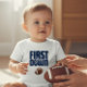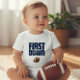 Celebrate your little one's first year with this adorable "First Year First Down" football-themed t-shirt. Featuring bold navy blue lettering and a classic football graphic, this shirt is perfect for any young fan. It's an ideal way to commemorate a birthday or just show off a love for the game. Made with comfortable fabric, this t-shirt is great for everyday wear, parties, or even a casual game day. Add a touch of sporty spirit to your child's wardrobe with this unique and eye-catching design.