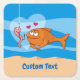 Cartoon illustration of fish in love with the worm bait in hook. Custom text.