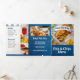 A fish and chips restaurant tri-fold menu card is perfect for restaurants looking to showcase their offerings with style, whether for in-house dining or takeout. Featuring mouthwatering images of fish and chips that can easily be swapped out to suit your cuisine, this design combines practical layout with aesthetic appeal. The background includes subtle touches of blue wood texture, giving the menu a coastal, rustic charm that complements seafood themes and casual dining atmospheres alike. Fully editable and professionally arranged, it’s a versatile solution for promoting your dishes in an eye-catching, easy-to-read format.
