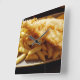 A close up photograph of Fish and Chips printed on a square wall clock.