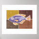 A graphic illustration of a fish. It was painted on fabric and then photographed