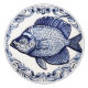 coastal sicilian left facing,italian hand painted pattern,mediterranean nautical portuguese fish,blue and white marine life,summer ocean sea fishes,beach house seafood portugal,authentic classic traditional painting,vintage sketch antique coast,folk art spanish mexican talavera,monochrome monochromatic decorative animal