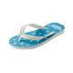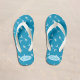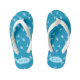 A cute pair of blue flip flops for kids with a simple fish bone pattern . Personalise them with the child's name using the provided template .
