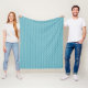 Aqua blue fish zigzag across this fleece blanket, creating a unique woven looking pattern resembling braids and herringbone.