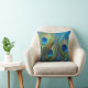 Three awesome peacock feathers. Amazing peafowl still life photography taken with a fish eye lens. This throw pillow with the blue background and the feathers look unique.