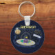 Fish in UFO alien space ship cartoon illustration Key Ring