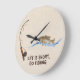Purchased this online and it got delivered quickly. It was a present for my Dads 70th birthday. He loves clocks so decided to get him one with something written on it. Battery went in and it started working straight away. Dads had no issues with it. Printing was just how it came up online.
