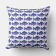 Fish Pattern - Navy Blue and Pink on White Cushion