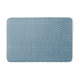 Slate blue bath mat with a scaled pattern of little happy fish.