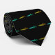 Unique tie pattern with fish in neon glimmering colours, green and yellow over contrasting black background. It makes a statement as different, unique and a little bit weird but undeniable stylish black tie.