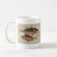 Antique fish engraving of red perch, or redfish - This fishing gift is based on an early coloured engraving by Mark Catesby (British, 1679-1749). The beautiful fish engraving is from "The Natural History of Carolina, Florida and the Bahama Islands", London, 1754 edition. The vintage fish engraving is titled "Perca rubra & C". The red perch is a common name of fish that refers to several species of fish. The Percua is actually the common Perch, a wonderful little game fish, generally living in fresh water. The saltwater dwelling red drum is also often referred to as a redfish or red perch. The vintage fish image of red perch shows two fish swimming past each other, the bottom fish is red while the top perch is grey and red. In many of our red perch fish gifts, there is a background showing light images of fish swimming by, and capped with a touch of calligraphy that talks about red perch.
