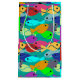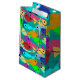 This gift bag has a design of a school of fish in green, blue, orange, yellow, red, pink, and blue-green swimming in the ocean.