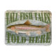 A decorative magnet for the fisherman in your life. "Tall fish tales told here" with a detailed image of a rainbow trout on a rustic weathered wood background.