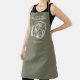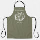 A custom apron for the avid fisherman, this design includes a graphic of a fisherman hooking a large mouth bass with "The Fish Whisperer" text above the graphic. The background colour is a shade of olive drab green, a colour typically seen in hunting and fishing apparel. You can customise this background colour to another colour if you desire. Personalise with a name or other desired text. This apron makes a great gift idea for anyone who enjoys fishing.