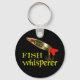 Funny fishing keychain for all fishermen and fisherwomen. Fish Whisperer in text with a full colour fishing lure near the top.
