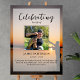 The perfect memorial poster for greeting family and friends as they enter your loved one's celebration of life. The design features a square personal photo, 5 lines of custom text and a background photo of a person fishing and the sunset. You can easily change this out with your own background photo . Classic yet unique - this template is so easy to personalise and will make a wonderful memorial keepsake too.