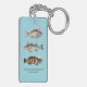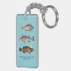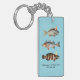 Fun keychain with an illustration of 3 fish wearing birthday hats. Personalize with your favorite fun phrase. The perfect keychain for fishing lovers. Use as a birthday gift or as a holiday or Christmas gift.
