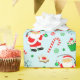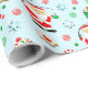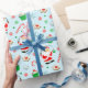 Creative fishing themed Christmas holiday gift wrap featuring Santa fisherman holding a fishing rod surrounded by Christmas treats.