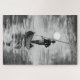 Fisherman On The Boat At Sunset - Black White Jigsaw Puzzle