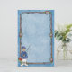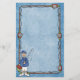 Stationery has fun swimming fish pattern in blue. Fishing pole border and Fisherman with his fishing pole and other fishing gear.