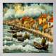 Fishermen on Boats in Stormy Sea Van Gogh Style Poster