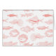 Hand - drawn vector pattern with various fishes in Living Coral colour and white background.
