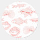 Hand - drawn vector pattern with various fishes in Living Coral colour and white background.