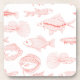 Hand - drawn vector pattern with various fishes in Living Coral colour and white background.