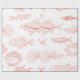 Hand - drawn vector pattern with various fishes in Living Coral colour and white background.