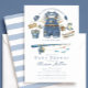 Celebrate your little fisherman with this charming fishing-themed baby shower invitation! Featuring a watercolor-style baby outfit with denim overalls, fishing rod, fish, and nautical details in soft blue tones, this design creates a cosy, rustic lake-inspired vibe. Paired with a classic blue stripe pattern backing, it’s perfect for a boy baby shower, “little fisherman” theme, or outdoor-loving parents. Fully customisable with your event details, this invitation is ideal for lakeside, nautical, or fishing-themed celebrations.