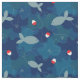 Fun blue camouflage print fabric, featuring fishes, lines, floats and hooks. For fishermen and women, kids who love to fish, and anglers.