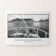 A jigsaw puzzle with with a black and white photographic image of a fishing boat entering the harbor in Table Bay, Cape Town, South Africa with Table mountain in the background. This puzzle is fully customizable. You can add a message or any text or you can change the size and amount of pieces of the puzzle to set the difficulty level as you prefer.