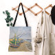Fishing Boats on the Beach at Saintes-Maries (1888) by Dutch post-impressionist artist Vincent Van Gogh. Original artwork is an oil on canvas seascape painting depicting several fishing boats on the ocean shore.