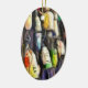 This Christmas ornament features an impressionistic image of fishing buoys on a rustic building.