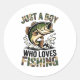 Fishing Camo B Fish Youth Just A Boy Who Loves Fis Classic Round Sticker