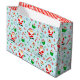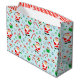 Creative fishing Christmas holiday designer gift bag featuring Santa Claus fisherman surrounded by holiday treats.