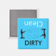A blue dishwasher magnet with a person Fishing with words saying Clen & Dirty makes a nice Dishwasher Magnets