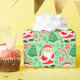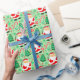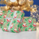 Creative fishing Christmas gift wrap featuring funny Santa Claus fisherman, Christmas candy and cookies.