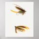 A drawing set of vintage salmon fly fishing flies. The feathers on this set are made up of the bright spotted tail feathers of an Argus pheasant, golden pheasant ruff and crest and grouse wing feathers,
