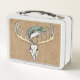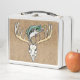 Largemouth bass jumping over large antler deer skull with faux leaf pattern background design. Bass and deer hand drawn by ©Tina Hesskew of Fishing Hunting Life.