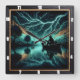 A striking illustration features a fisherman in a boat on a dark lake, illuminated by a brilliant lightning storm. The abstract, glowing lines and the sharp contrast between light and shadow create a moody and adventurous atmosphere. The mountains and a lone duck add a sense of place to the dramatic scene.