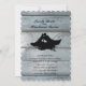 Love to fish? This wedding invitation features a vintage silhouette of lovers fishing in a boat, on a background image of old barn wood. Perfect for outdoorsy couples. You can change the paper type and corners to suit your needs.