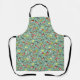 This apron features fishing lure illustrations inspired by vintage fishing lures in shades of red and yellow on a pale teal background.