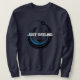 This nautical sweatshirt features a vibrant blue and black line as it unfurls gracefully, mimicking the fluid motion of casting a line into the deep blue sea. A vibrant fisherman-inspired aesthetic. This design evokes a sense of motion and adventure on the waters. It says 'just reeling' that can be changed as desired.